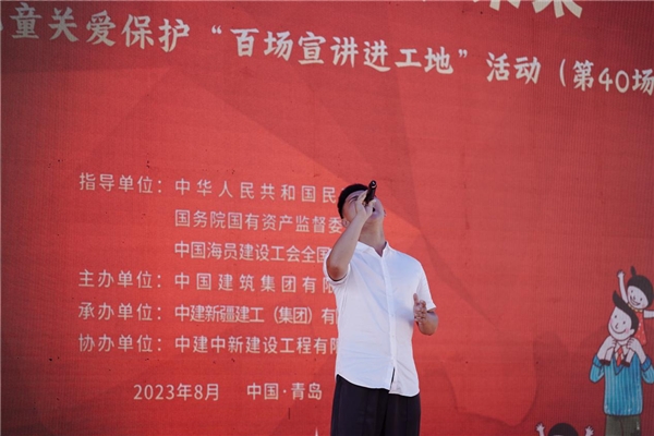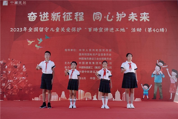 8月18日,由中華人民共和國民政部、國務(wù)院國有資產(chǎn)監(jiān)督管理委員會、中國海員建設(shè)工會全國委員會指導(dǎo),中建集團(tuán)主辦,中建新疆建工承辦,中建中新協(xié)辦的“奮進(jìn)新征程同心護(hù)未來”2023年全國留守兒童關(guān)愛保護(hù)“百場宣講進(jìn)工地”(第40場)活動在中建中新劉家下莊社區(qū)改造項目舉行。