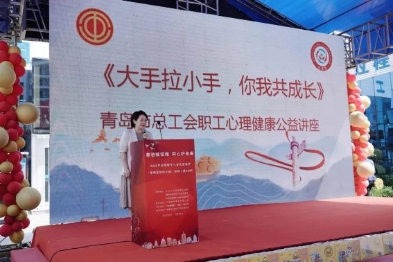 國家二級心理咨詢師、青島市總工會心理專家講師團(tuán)成員荊玉娟作專題講座