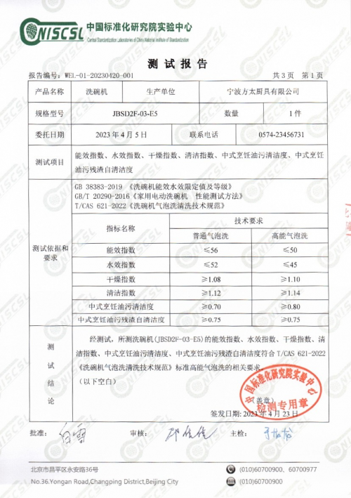 2022年,方太聯(lián)合中國家用電器研究院發(fā)布首個《洗碗機(jī)氣泡洗清洗技術(shù)規(guī)范》,此次舉辦的媒體溝通會上,方太水槽洗碗機(jī)新5系又通過了中國標(biāo)準(zhǔn)化研究院完成技術(shù)驗(yàn)證,經(jīng)由嚴(yán)苛的技術(shù)測試和實(shí)效檢驗(yàn),測試結(jié)果最終為,能效指數(shù)50、水效指數(shù)45、干燥指數(shù)1.29、清潔指數(shù)1.24、中式烹飪油污清潔度0.87、中式烹飪油污殘?jiān)郧鍧嵍?.77,各項(xiàng)指標(biāo)均符合要求,其中干燥指數(shù)、清潔指數(shù)均高于國家一級水效標(biāo)準(zhǔn)基數(shù),且對中式烹飪油污的清潔效果顯著。