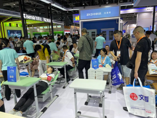 在今年的兩會(huì)上,不少人大代表提出在全國中小學(xué)推行“趴睡”變“躺睡”,充分保證中小學(xué)生實(shí)現(xiàn)優(yōu)質(zhì)午睡的建議,本次展會(huì)中科達(dá)的午休課桌椅便給出了解決方案。作為中科達(dá)全新推出的重點(diǎn)產(chǎn)品,午休課桌椅是第一次帶到全國觀眾的面前,一經(jīng)推出,立即聚焦全場,引起了現(xiàn)場觀眾們的圍觀點(diǎn)贊。大家都對(duì)這個(gè)新產(chǎn)品新概念表達(dá)了濃厚的興趣,仔細(xì)的詢問每一處產(chǎn)品細(xì)節(jié),紛紛躺在午休課桌椅上去親身體驗(yàn),并在體驗(yàn)后對(duì)午休課桌椅的創(chuàng)新性、實(shí)用性和舒適感交口稱贊,表示午休課桌椅從關(guān)愛學(xué)生的角度出發(fā),很好地解決了長久以來困擾著學(xué)生午間休息的難題。幫助學(xué)生們實(shí)現(xiàn)了從“趴睡”到“躺睡”的轉(zhuǎn)變,使學(xué)生們的午間休息效果大大增強(qiáng)。讓我們一起來回顧現(xiàn)場的一些精彩瞬間。