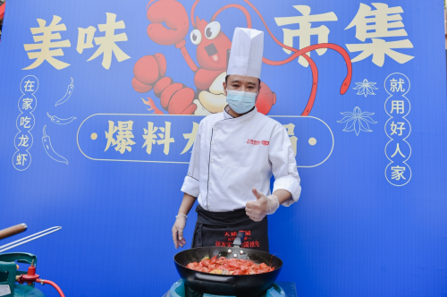 美味市集當(dāng)然少不了美味。專業(yè)大廚來到現(xiàn)場(chǎng)爆炒3款小龍蝦,麻辣小龍蝦、辣鹵小龍蝦、蒜蓉小龍蝦……數(shù)百斤小龍蝦每天供應(yīng),營(yíng)造了“視”“聽”“嗅”“味”“觸”的五覺體驗(yàn),讓用戶嘗過癮,也將好人家調(diào)料的豐富與美味根植于心。