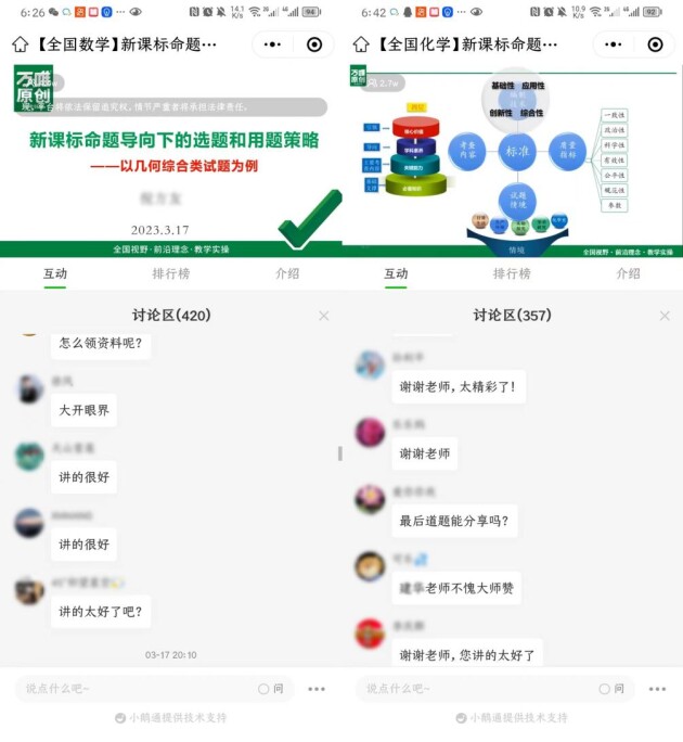 3月17日,萬唯特邀全國中考命題前沿省市專家,以新課標(biāo)導(dǎo)向為切入點(diǎn),聚焦“好題”在二輪復(fù)習(xí)的使用場景,通過對中考命題評估和全國考改趨勢的分析、好題選用標(biāo)準(zhǔn)的闡述等,策劃中考七科(不含地理、生物學(xué))公益?zhèn)淇贾辈フn。內(nèi)容針對性、實用性強(qiáng),吸引了超20萬人次老師觀看,對老師的教學(xué)和備考有非常積極的指導(dǎo)作用。