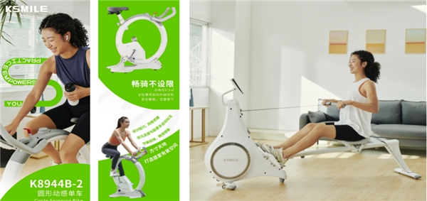 KSMILE為新世代年輕人打造的居家個(gè)性健身品牌,將健身與娛樂(lè)、智能科學(xué)、自我管理融為一體,為家用健身行業(yè)注入新的活力。本屆體博會(huì)KSMILE展示了智能科技與顏值兼?zhèn)涞呐懿綑C(jī)、健身車、劃船機(jī)等產(chǎn)品,讓現(xiàn)場(chǎng)觀眾親身體驗(yàn)康樂(lè)佳為家庭用戶提供的高品質(zhì)健身器材??梢灾攸c(diǎn)關(guān)注K8944B-2圓形動(dòng)感單車、K8328BSW自發(fā)電立式車、K8750TP-1等產(chǎn)品。