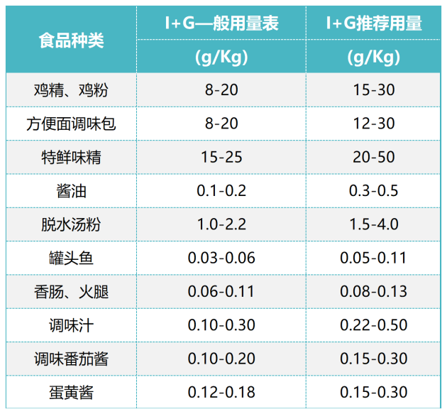 味精和I+G是互為依賴的增鮮劑,兩者合理并用時,可使菜肴鮮味躍增,達到味精無法達到的鮮味,我們稱之為“鮮味”的相乘效果。使用時,I+G添加量約為味精的2~5%,其增鮮效果可以提高3~6倍左右,而且對產品品質有很大提升,使味覺明顯改善,甜、酸、苦、辣、鮮、香和咸味等更加濃郁而協(xié)調,更接近天然食品的味道。