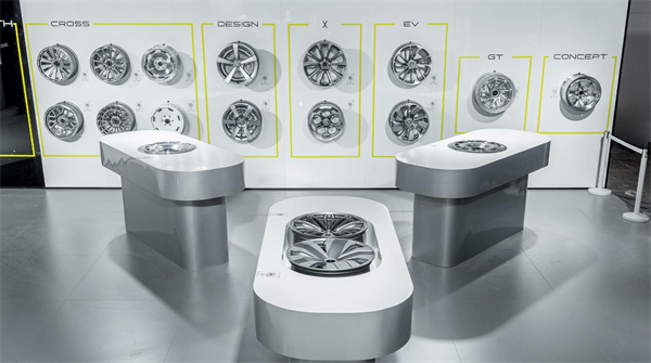 現(xiàn)場(chǎng)還展示了PLAY.STH的5個(gè)系列13款輪轂,分別為CROSS系列、X系列、GT系列、DES!GN系列、EV系列等,多款造型適配不同用車(chē)場(chǎng)景。這5個(gè)系列輪轂均為6061-T6 鋁合金材質(zhì)的鍛造輪轂,結(jié)構(gòu)強(qiáng)度高,成品輕量化。據(jù)了解,其中的CR01\CR02\CR03 款是國(guó)內(nèi)首批獲得 LM 認(rèn)證的輪轂,PLAY.STH所有輪轂產(chǎn)品在上市前均會(huì)主動(dòng)完成車(chē)輪沖擊性能試驗(yàn)、車(chē)輪動(dòng)態(tài)彎曲疲勞性能試驗(yàn)、車(chē)輪動(dòng)態(tài)徑向疲勞性能試驗(yàn)等輪轂三大安全性能試驗(yàn),漆膜品控堅(jiān)持更高要求的車(chē)規(guī)級(jí)標(biāo)準(zhǔn)。內(nèi)部輪轂及整車(chē)設(shè)計(jì)團(tuán)隊(duì)溝通配合,確保產(chǎn)品在造型出眾的同時(shí),滿足安全可靠的基本要求。