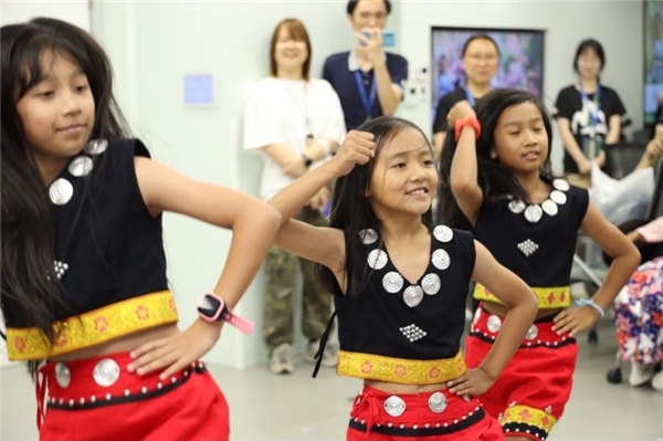 在后續(xù)的活動中,孩子們向企業(yè)志愿者們展示了他們各民族的才藝。來自佤族的孩子向志愿者們展現了傳統(tǒng)的甩發(fā)舞,佤族人民以長發(fā)為美,佤族姑娘們伴隨著鼓點鮮明的音樂,甩動起來的長發(fā)就像飄著的一塊塊黑綢緞,飄逸大氣,野性十足,自信展現著本民族獨特的文化魅力。來自納西族的孩子們帶著志愿者認識他們的傳統(tǒng)文字——東巴文,這是世界上唯一一種還在使用的象形文字,距今已有1200多年的歷史。志愿者們借助形象的圖像表達認識了東巴文中的十二生肖動物文字,并和孩子們一起體驗“東巴十二生肖”桌游,在充滿民族文化內涵的益智游戲中,沉浸式感受納西族的智慧。各族青少年和企業(yè)志愿者們玩鬧在一起,活動會場內回蕩著大家的歌聲、笑聲。