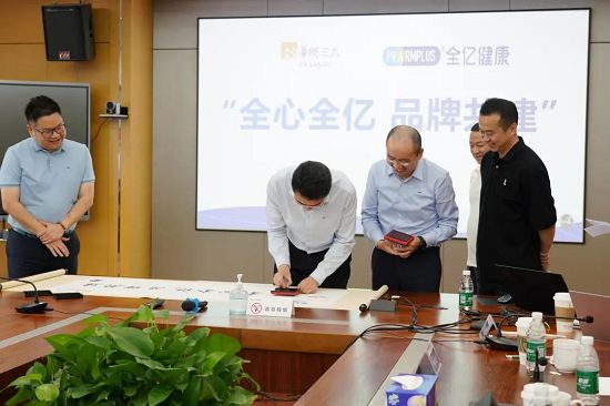 2023年7月26日下午,全億健康產(chǎn)業(yè)集團(tuán)CEO萬明治、中國藥店雜志出品人吳開華、副總裁孫磊、全國重點(diǎn)合作商管理中心總經(jīng)理胡建洲、采銷管理中心副總經(jīng)理王蔚、全國重點(diǎn)合作商管理中心采銷經(jīng)理陸志強(qiáng)一行赴華潤三九醫(yī)藥股份有限公司(簡稱“華潤三九”)考察交流。