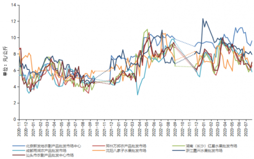 圖4 重點批發(fā)市場臍橙價格走勢