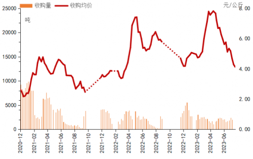 在產(chǎn)地收購方面,截至7月27日,秭歸夏橙已銷售本產(chǎn)季產(chǎn)量的59.38%,走貨速度整體低于去年同期。受降雨天氣影響,貿(mào)易商采購意愿減弱,夏橙收購價格及收購量下降。本期秭歸夏橙收購量環(huán)比下跌17.49%。價格方面,本期夏橙收購價格報4.12元/公斤,環(huán)比下跌3.69%,同比下跌34.10%。