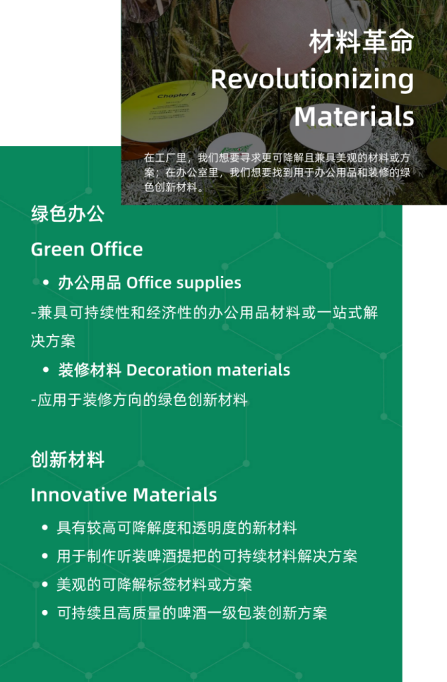 無論是處于種子輪還是有了一定的規(guī)模,只要你認為自己的產(chǎn)品、服務(wù)、解決方案有任何關(guān)聯(lián)性,我們都鼓勵您積極報名,共拓可持續(xù)商業(yè)機會!今年的挑戰(zhàn)議題如下: