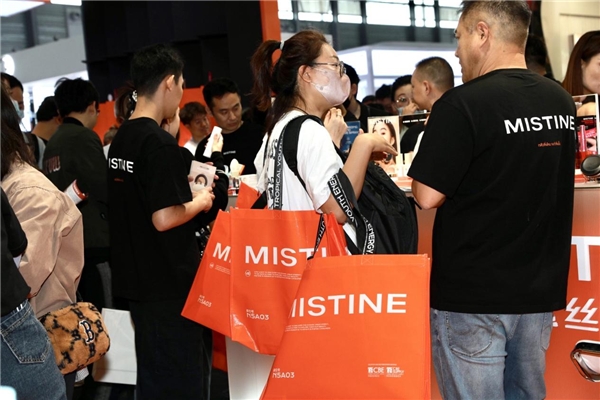 在N5主題展館的Mistine蜜絲婷展區(qū),記者看到,展位以字母“M”為空間創(chuàng)意,以活力橙作為主創(chuàng)色,處處充滿熱帶植物和光的元素,展現(xiàn)出“遇見光、去追光、成為光”的青春態(tài)度和“泰酷辣”的品牌風(fēng)格,是現(xiàn)場最受歡迎的展區(qū)之一。