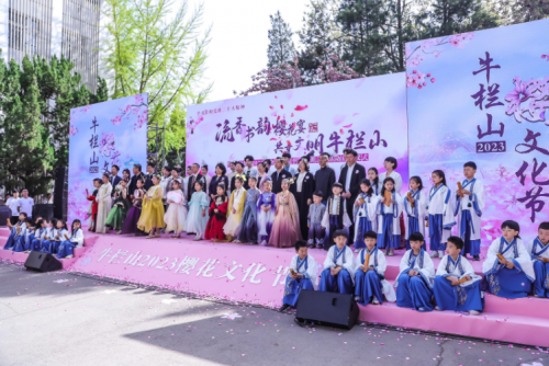 開幕式在孩子們的朗朗讀書聲中緩緩拉開,一群少年身著漢服在朝陽中誦讀《少年中國(guó)說》、《水調(diào)歌頭》。牛欄山地區(qū)黨委書記姜惠琴在致辭時(shí)表示:“以櫻花為媒,舉辦此次櫻花節(jié)活動(dòng),以沉浸式場(chǎng)景演出,融入全民閱讀,文明創(chuàng)城等活動(dòng),相信能夠給大家?guī)硪粓?chǎng)文化盛宴,也將為順義區(qū)打造一個(gè)更加亮麗、持久的文化旅游城市名片?!?月23日,將迎來第28個(gè)世界讀書日。牛欄山作為全國(guó)文明鎮(zhèn),姜惠琴在此倡導(dǎo)大家多讀書,讀好書,以書為媒,為文明創(chuàng)城創(chuàng)建賦能添彩,讓全民閱讀之氣彌漫,讓文明在全社會(huì)蔚然成風(fēng)。