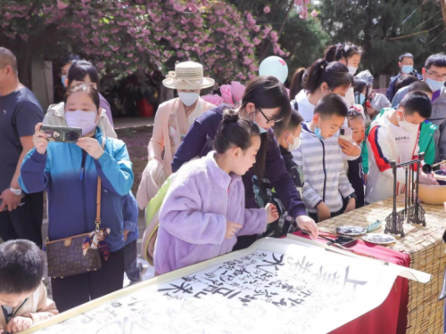 來賓們?cè)谫p櫻的同時(shí)紛紛錄制有聲明信片“我想對(duì)黨說”,體驗(yàn)各式手作、風(fēng)箏制作、DIY團(tuán)扇制作、漢服秀等?!霸搅_衫袂迎春風(fēng),玉刻麒麟腰帶紅。”春色花下,飄逸的裙裾、精致的簪花,中華傳統(tǒng)服飾之美與絢爛多姿的國(guó)潮風(fēng)交相輝映,在水墨香中感受漢字書法的魅力所在,在詩詞之美中,領(lǐng)略詩意人生的寫照、家國(guó)情懷的寄托,傳承詩詞文化,涵養(yǎng)民族精神。