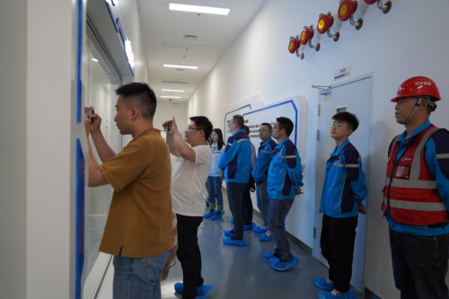 隨后,在項(xiàng)目團(tuán)隊(duì)的帶領(lǐng)下,媒體嘉賓們走進(jìn)施工一線,深入了解遂寧蜂巢能源項(xiàng)目施工建設(shè)歷程,感受寶冶“建精品工程、鑄長青基業(yè)”的企業(yè)使命。在已完工的1#綜合樓,項(xiàng)目經(jīng)理講解了1#建筑功能及周邊海綿城市應(yīng)用情況,隨后經(jīng)過2#中試線,為大家介紹了廠房建筑特點(diǎn)及2#中試線工藝功能,在5#建筑電極及裝配車間的參觀通道內(nèi),記者們與項(xiàng)目管理團(tuán)隊(duì)探討交流了相關(guān)廠房建筑特點(diǎn)及工藝流程,最后經(jīng)4#化成車間出廠區(qū)。