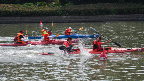 2023年5月13日,由上海市社會體育管理中心(上海市體育競賽管理中心)、閔行區(qū)體育局、新虹街道黨工委、新虹街道辦事處共同主辦,上海盈動體育文化股份有限公司承辦,上海市船艇運(yùn)動協(xié)會、江蘇省船艇運(yùn)動協(xié)會、浙江省船艇運(yùn)動協(xié)會、安徽省水上運(yùn)動協(xié)會、上海申鐵投資有限公司聯(lián)合支持的2023年上海城市業(yè)余聯(lián)賽“新虹杯”長三角皮劃艇·槳板邀請賽在新虹街道華翔綠地公園水域隆重舉行,來自長三角地區(qū)的兩百余名水上運(yùn)動愛好者在新虹街道華翔綠地公園水域乘風(fēng)破浪,踏水前行。