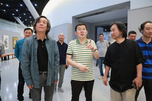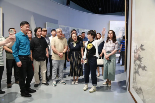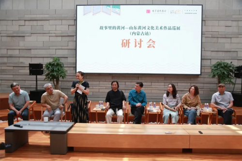 開展當日上午,山東美術(shù)館與內(nèi)蒙古文藝界領(lǐng)導(dǎo)嘉賓、藝術(shù)家一同參觀展覽。隨后,以“黃河故事”為主題的展覽研討會順利舉辦。