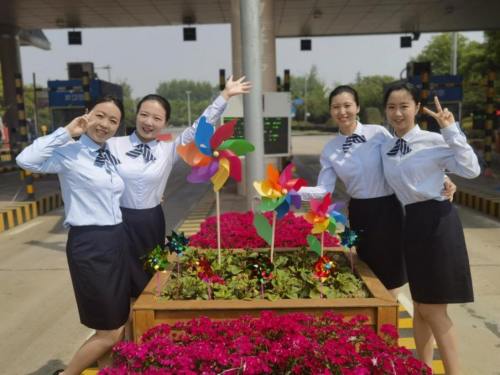 在收費(fèi)現(xiàn)場,工作人員正在為節(jié)假日的流量高峰時(shí)刻忙碌著。增派人手,開足道口;加大收費(fèi)廣場和綠化帶的清潔工作,在安全島增加時(shí)令花卉,營造花團(tuán)錦簇的節(jié)日氛圍,同時(shí)車道周邊布滿五彩繽紛的風(fēng)車迎風(fēng)旋轉(zhuǎn),更加提升了收費(fèi)站的顏值。廣場上,最美路姐團(tuán)隊(duì)搭建的便民服務(wù)臺格外