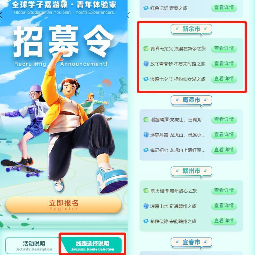 2.主辦方將為“嘉游贛·青年體驗(yàn)家”免費(fèi)購(gòu)買人身意外保險(xiǎn)。