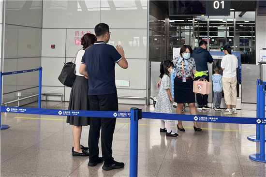 2023年6月30日上午9點13分,七歲的小旅客仲奕昕在上海浦東機場的東航值機區(qū)的愛心服務柜臺與前來送行的父母揮手告別,掛著裝有自己證件和航班信息的“小藍袋”,牽著東航地服工作人員的手,小奕昕即將乘坐東航FM9095航班由上海浦東飛往大連,與遠在老家的爺爺奶奶團聚……