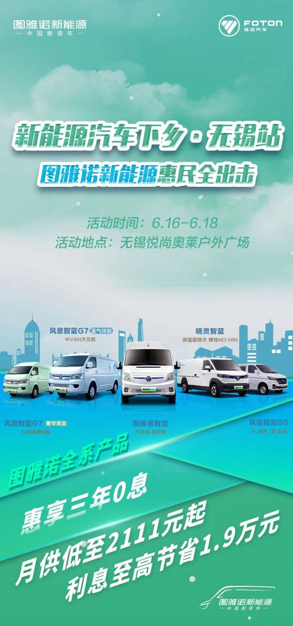6月16日,2023年全國新能源汽車下鄉(xiāng)啟動儀式在江蘇無錫惠山盛大召開,福田圖雅諾攜風(fēng)景智藍(lán)G7和精靈智藍(lán)E7強(qiáng)勢亮相,展示創(chuàng)新成果和實體經(jīng)濟(jì)的深度融合,助力鄉(xiāng)村振興,為生態(tài)可持續(xù)發(fā)展貢獻(xiàn)力量。