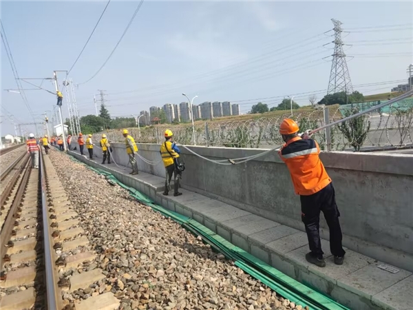隨著作業(yè)人員默契配合下,起錨、放線、滑輪懸掛固定、落錨等各個(gè)工序有序推進(jìn),中國(guó)中鐵電氣化局運(yùn)管公司上海維管處合肥維管段橫跨包公大道供電線恢復(fù)架設(shè),標(biāo)志著淮南線接觸網(wǎng)遷改施工進(jìn)入最后階段。