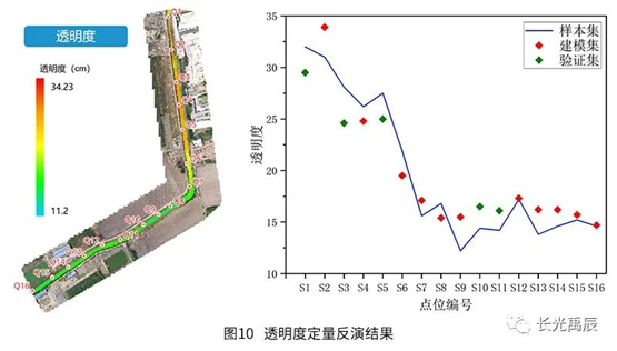 精度評定結(jié)果見表2.各水質(zhì)參數(shù)的平均相對誤差均在25%以下,可滿足常態(tài)化、高頻次的全局水質(zhì)檢測需求?;瘜W(xué)需氧量反演誤差稍大是因?yàn)樵摋l河道整體水質(zhì)情況存在較大的空間異質(zhì)性,河道不同河段中有機(jī)物含量差異較大,而水體化學(xué)需氧量與有機(jī)物濃度密切相關(guān),所以這種變化較快的梯度可能會引入一定的誤差,模型也有繼續(xù)優(yōu)化的空間。