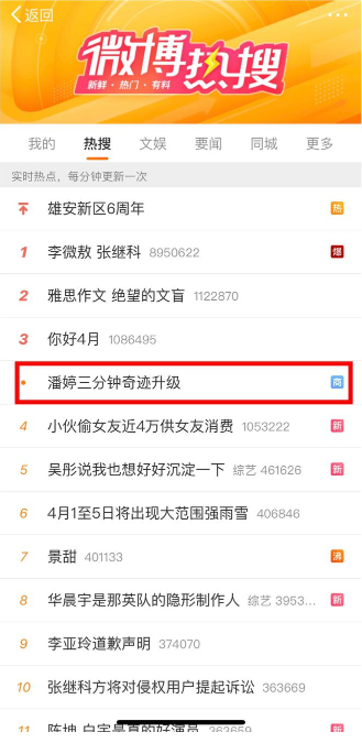 4月1日發(fā)布會當天,品牌相關(guān)微博熱搜#潘婷三分鐘奇跡升級#,站內(nèi)外一起聯(lián)動,調(diào)動粉絲關(guān)注度并積極參與討論,為發(fā)布會預熱并引流,撬動粉絲經(jīng)濟為新品熱賣奠定基礎。