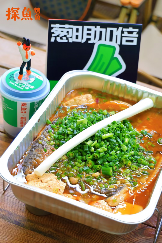 在產(chǎn)品研發(fā)上,探魚也充分考慮了顧客在感官、味覺、互動(dòng)等多方面的場景體驗(yàn),最新推出的“鮮青椒蔥蔥烤魚”就充分體現(xiàn)了這一點(diǎn)。鮮青椒蔥蔥烤魚在創(chuàng)新理念上,是探魚招牌口味“鮮青椒爽麻烤魚”口味的味型升級(jí),在藤椒口味的基礎(chǔ)上增加時(shí)令性的蔥香風(fēng)味,一經(jīng)推出,就頗受大眾喜愛。據(jù)悉,新品上市7天,已經(jīng)比去年同期上新的烤魚銷量上漲105%。在產(chǎn)品呈現(xiàn)上,新品上餐時(shí)配上一整棵鮮甜大蔥,然后由服務(wù)人員現(xiàn)場進(jìn)行“剪蔥儀式”,將蔥段下入鍋內(nèi),提味增香,同時(shí)為消費(fèi)者營造一種新奇特的體驗(yàn)感。除此之外,探魚借勢本次上新,與最近大熱的植物品牌“超級(jí)植物公司”聯(lián)名推出可以種出小蔥的“蔥明種子卡”,不僅深化蔥的產(chǎn)品主題,還收獲了目標(biāo)客群“打工人”的情感共鳴。