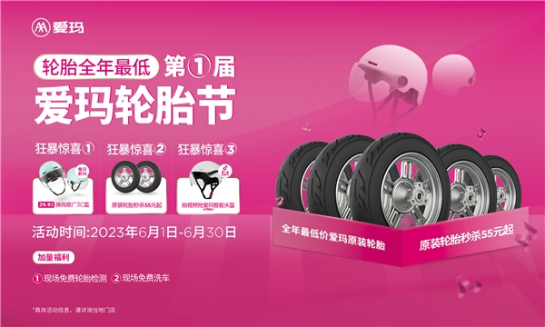 對于真正懂電動(dòng)車的用戶來說,一副好輪胎是非常重要的。當(dāng)電動(dòng)車用久了,輪胎逐漸磨損,如何換一副正品好輪胎呢?愛瑪車服首創(chuàng)的“愛瑪輪胎節(jié)”于6月1日至30日開啟,帶來全年輪胎最低價(jià)、愛瑪電池、頭盔等全品類優(yōu)惠和不限品牌免費(fèi)洗車、輪胎檢測等優(yōu)厚福利,必將得到廣大用戶的熱烈歡迎。