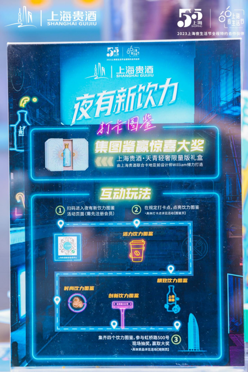 “2023上海夜生活節(jié)”正如火如荼地進行,上海貴酒營造創(chuàng)新消費體驗,撬動消費活力,打造了貫穿整個6月“夜有新飲力”主題活動,攜手滬上高端餐飲及深受年輕消費者青睞的網(wǎng)紅餐廳發(fā)起全城總動員,創(chuàng)造“餐+酒+娛”場景融合新模式 ,形成線上線下互動營銷、休閑娛樂于一體的創(chuàng)新消費場景,助力上海點亮城市夜經(jīng)濟。
