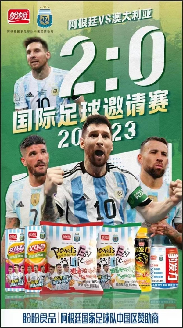 6月15日,萬眾矚目的2023北京阿根廷vs澳大利亞國際足球邀請賽在北京工人體育場正式開打。梅西開場僅81秒率先進球,帶領(lǐng)阿根廷隊最終以2比0戰(zhàn)勝澳大利亞隊,阿根廷隊以他們頂級的技術(shù)水平和默契的團隊合作,折服了現(xiàn)場數(shù)萬觀眾。盼盼食品作為阿根廷隊的官方贊助商,熱烈祝賀阿根廷隊在亞洲巡回賽首戰(zhàn)告捷!