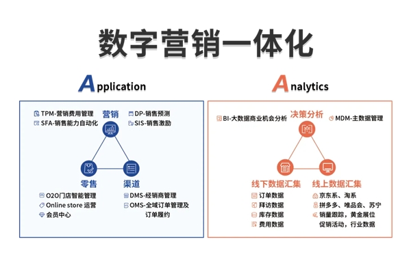 賽博威雙A模型,為企業(yè)搭建并打通相關系統(tǒng)(Application),通過數據洞察分析(Analytics)實現(xiàn)企業(yè) 私域數據 資產沉淀及數據智能分析,推動企業(yè)數據商業(yè)化應用。 雙A合璧,助力企業(yè)打破信息孤島,建立企業(yè)私域數據體系。在提升不同職能和部門之間的協(xié)同能力、建立創(chuàng)新及技術驅動的業(yè)務模式的同時,通過智能數據分析,激發(fā)企業(yè)營銷鏈路數據價值,輔助戰(zhàn)略決策,推動整個價值鏈智慧創(chuàng)造,助力實現(xiàn)業(yè)務可持續(xù)增長,為未來接入人工智能做好準備。