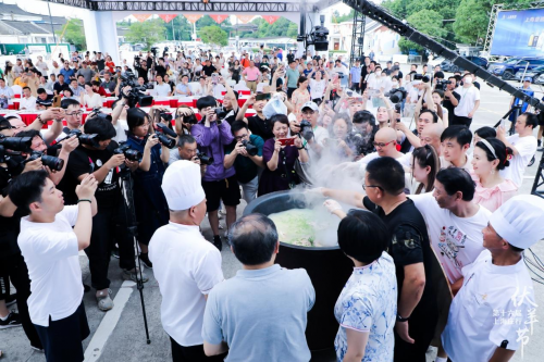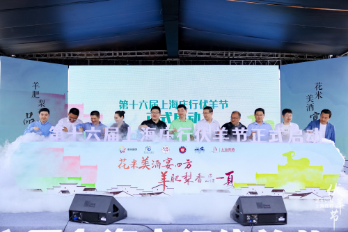 最后,奉賢區(qū)委、新民晚報(bào)、東方廣播中心、東方網(wǎng)、區(qū)融媒體中心、區(qū)文旅局、區(qū)農(nóng)委、莊行鎮(zhèn)及上海貴酒的領(lǐng)導(dǎo)共同開啟注水儀式,手持水瓶緩緩澆在寫有“第十六屆上海莊行伏羊節(jié)正式啟動(dòng)”字的模具里,將開幕式的儀式感徹底拉滿。