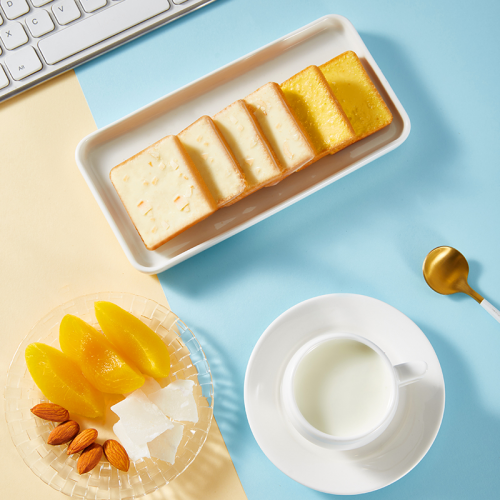 更讓人驚喜的,除了原有的原味、抹茶味、檸檬味等口味,梅尼耶干蛋糕又新研發(fā)出了添加真實黃桃果粒黃桃味、添加椰子片的椰子味以及含有巴旦木片的巴旦木味三種口味。 “老婆餅”里不一定有“老婆”,梅尼耶干蛋糕的新口味里可有真材實料噢!