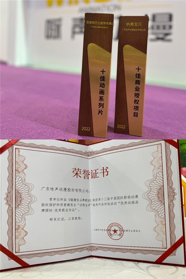 ? ? 2023年7月20日-7月23日,第十三屆中國國際影視動漫版權保護和貿易博覽會(簡稱“漫博會”)在東莞舉辦,詠聲動漫以優(yōu)異表現榮獲三項大獎。其中,豬豬俠X納美寶貝聯名系列榮獲“中國IP Bank獎——十佳商業(yè)授權項目”,《百變校巴之超學先鋒1》榮獲“中國IP Bank獎——十佳動畫系列片”。詠聲動漫《豬豬俠品牌授權》則斬獲“動感金羊”優(yōu)秀動畫品牌授權-優(yōu)秀提名作品。