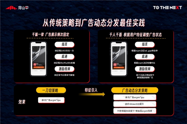 ▎閱讀行業(yè):?為避免過往千篇一律的廣告展示影響用戶體驗(yàn),穿山甲基于GroMore獨(dú)特的用戶價(jià)值分組能力,借助用戶所看書籍類型、閱讀速度、在線時(shí)長、累計(jì)觀看廣告數(shù)量等不同參數(shù),為開發(fā)者建立了一套用戶分層策略。通過“廣告動態(tài)分發(fā)”,根據(jù)用戶特征及時(shí)調(diào)整廣告狀態(tài),在不影響用戶留存的情況下進(jìn)一步提升廣告arpu,實(shí)現(xiàn)LTV最大化。