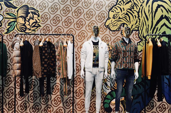 除了注重客戶體驗(yàn),現(xiàn)場(chǎng)服裝陳列搭配及展館搭建也很有講究。展廳內(nèi),第三代OT原創(chuàng)圖案與前Gucci設(shè)計(jì)師Paola Smania的“虎嗅薔薇”聯(lián)名印花,交相輝映,彰顯著歐度品牌的風(fēng)格與調(diào)性。墻面上老花、猛虎、花卉幾大元素渾然天成,帶來(lái)強(qiáng)烈的視覺(jué)藝術(shù)美感。左側(cè)墻面還展出了《歐度與清華大學(xué)藝術(shù)與科學(xué)研究中心色彩研究所》有關(guān)中國(guó)男裝色彩研究的合作報(bào)告。