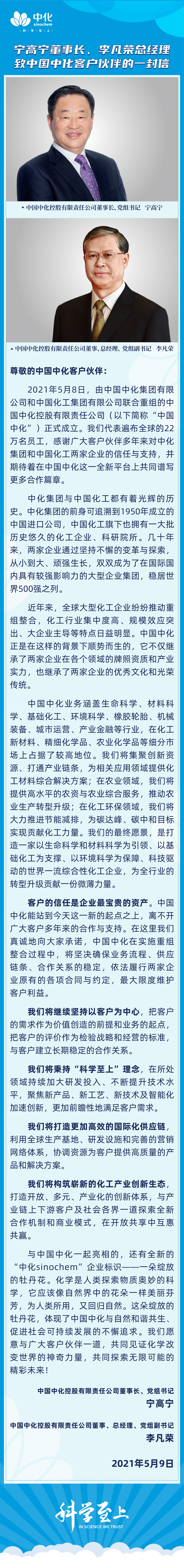 寧高寧董事長、李凡榮總經(jīng)理致中國中化客戶伙伴的一封信