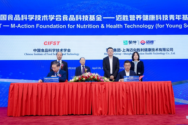 4月26日,2023年國際食品安全與健康大會在北京順利召開。會議期間,蒙牛集團旗下專注中國人運動營養(yǎng)的高端專業(yè)品牌邁勝,聯(lián)合中國食品科學技術學會設立“中國食品科學技術學會食品科技基金——邁勝營養(yǎng)健康科技青年基金”(下簡稱“基金”)。中國食品科學技術學會副理事長、中國疾病預防控制中心營養(yǎng)與健康所所長丁鋼強,中國工程院院士、國家食品安全風險評估中心總顧問陳君石,中國工程院院士、中國食品科學技術學會副理事長、中國農(nóng)業(yè)大學營養(yǎng)與健康研究院院長任發(fā)政,蒙牛集團副總裁、戰(zhàn)略投資管理負責人陳易一、蒙牛集團營養(yǎng)健康事業(yè)部總經(jīng)理吳健、蒙牛集團營養(yǎng)健康事業(yè)部研發(fā)中心負責人趙艷榮出席了簽約儀式。