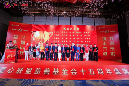 下午,愛心聯(lián)盟慈善基金會(huì)成立十五周年盛典隆重舉行。全國勞動(dòng)模范、全國五一勞動(dòng)獎(jiǎng)?wù)芦@得者、全國道德模范、吉林省工商聯(lián)副主席、吉林省河南商會(huì)會(huì)長、愛心聯(lián)盟慈善基金會(huì)理事長李萬升,河南省政府駐上海辦副主任胡華杰,哈爾濱市政府駐上海辦經(jīng)協(xié)處處長田磊,中國浦東干部學(xué)院黨建研究中心主任吳濤,上海中信國旅總經(jīng)理羅良剛,山東馳恒投資發(fā)展有限公司董事長王久紅,昆山物流協(xié)會(huì)會(huì)長孫喜,來伊份股份有限公司高級(jí)副總裁趙漢利,新希望集團(tuán)草根資本投資部部長許云龍,上海歐邦醫(yī)療管理有限公司創(chuàng)始人崔海茹,眼界(上海)健康管理有限公司創(chuàng)始人謝攖寧,浙江省有機(jī)產(chǎn)業(yè)協(xié)會(huì)理事長胡珊,上海妃魚股份高級(jí)副總裁李財(cái)鋒,愛心聯(lián)盟慈善基金會(huì)執(zhí)行理事長楊崢,以及上海市工商聯(lián)直屬商會(huì)和各省市在滬異地商會(huì)秘書長等來自全國各地的精英和愛心聯(lián)盟成員300余人歡聚一堂,共同慶祝愛心聯(lián)盟慈善基金會(huì)成立十五周年。