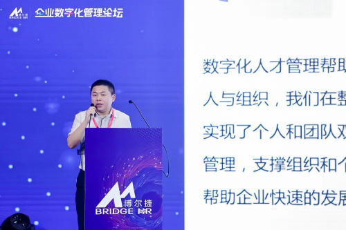 侯博士以2019年與中歐國(guó)際工商學(xué)院的忻榕教授、阿里巴巴產(chǎn)業(yè)互聯(lián)網(wǎng)中心主任陳威如教授歷經(jīng)兩年共同創(chuàng)作的《平臺(tái)化管理》一書作為理論指導(dǎo),以及多年人力資源行業(yè)經(jīng)驗(yàn)的沉淀和敏銳的市場(chǎng)洞察,總結(jié)構(gòu)建平臺(tái)化企業(yè)的重要性,包括小前端、強(qiáng)中臺(tái)和穩(wěn)后臺(tái)的建設(shè)。侯博士介紹了平臺(tái)化管理的五化模型:能力數(shù)字化、關(guān)系數(shù)字化、績(jī)效顆粒化、結(jié)構(gòu)柔性化、以及文化利他化。侯博士分享了博爾捷集團(tuán)的成功經(jīng)驗(yàn),鼓勵(lì)其他企業(yè)在探索和實(shí)踐中進(jìn)行數(shù)字化轉(zhuǎn)型和組織變革,以實(shí)現(xiàn)平臺(tái)化管理。