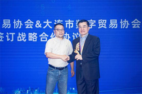 寧波市服務(wù)貿(mào)易協(xié)會與大連市數(shù)字貿(mào)易協(xié)會簽訂戰(zhàn)略合作協(xié)議并贈送“東方服貿(mào)港-大連”友好獎杯,通過強(qiáng)強(qiáng)聯(lián)手,抱團(tuán)搶抓新機(jī)遇,逐浪“數(shù)貿(mào)”新藍(lán)海。