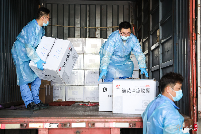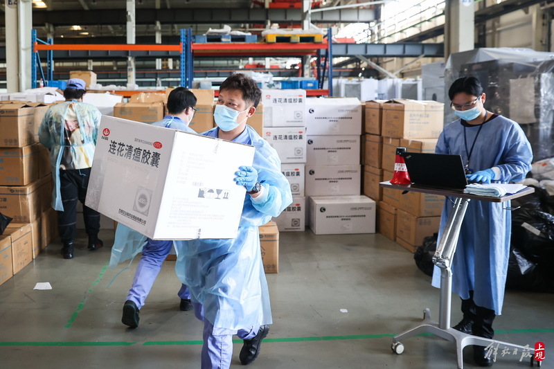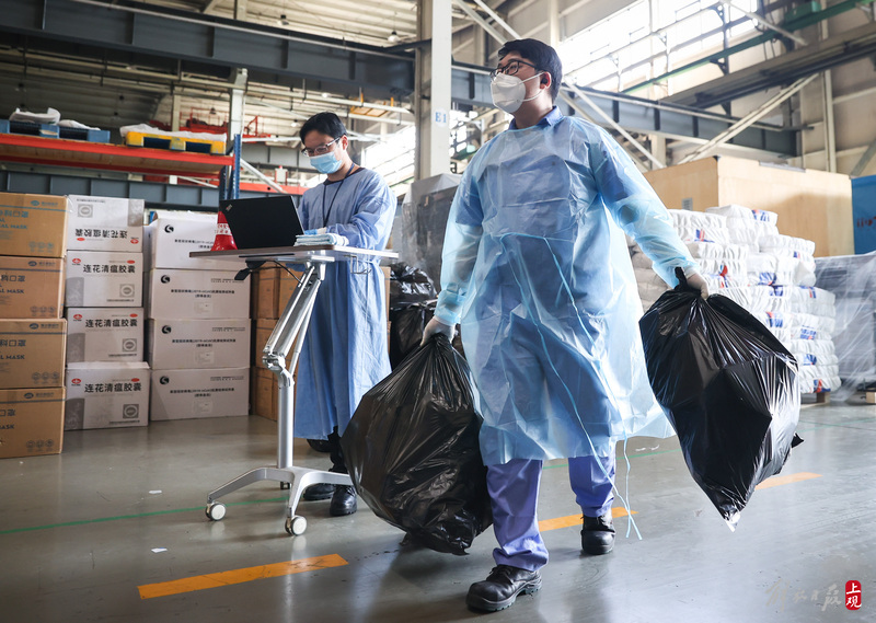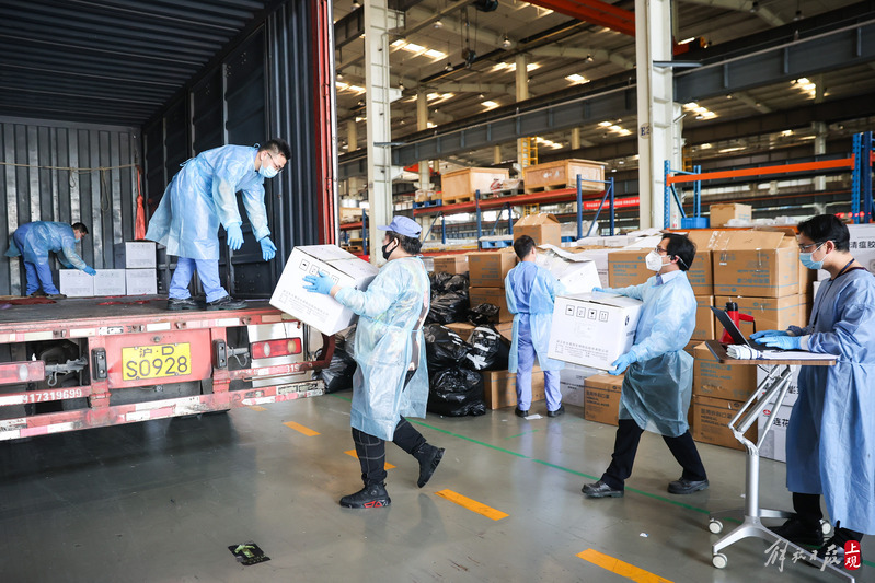 為不增加基層負(fù)擔(dān),寶山區(qū)啟用7個分揀點(diǎn)對應(yīng)13個街鎮(zhèn)園區(qū),由招募來的企業(yè)職工及志愿者流水線作業(yè),對物資開展卸貨、分裝。