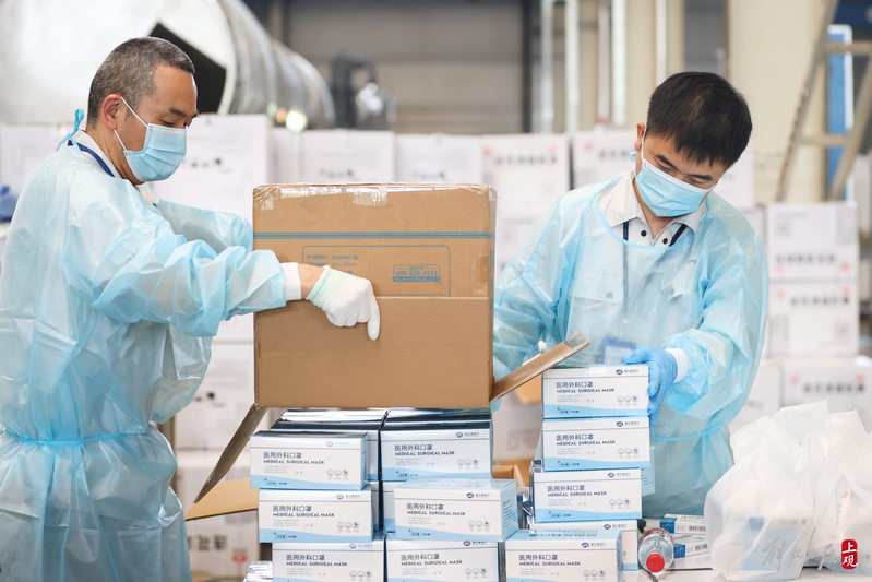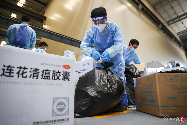 現(xiàn)場負(fù)責(zé)人楊東告訴記者:“我們是4月6日晚上接收到分裝任務(wù),目前累計打包送出8萬余份‘防疫服務(wù)包’,我們從早到晚能快一點(diǎn)就快一點(diǎn),就想著盡快把物資打包好送到居民手中。”