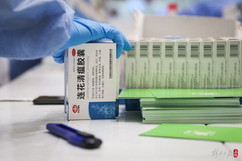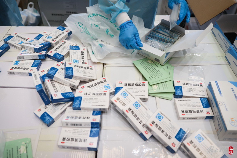 每個服務(wù)包內(nèi)有口罩、連花清瘟膠囊、抗原測試盒,并附有一張上海市疫情防控工作領(lǐng)導(dǎo)小組辦公室的心意卡。
