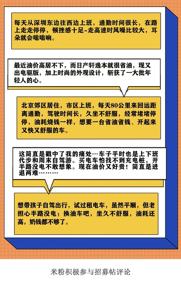 參與試駕的3位米粉代表分別從周邊游微旅行、候鳥式遠(yuǎn)距離通勤、高速出行等真實(shí)場(chǎng)景出發(fā),產(chǎn)出了深度試駕體驗(yàn)帖,解決了用戶城市及高速駕駛的油耗高、動(dòng)力響應(yīng)遲滯、行駛頓挫、噪音困擾等難題,帶給用戶全新的純電試駕體驗(yàn),呈現(xiàn)出了軒逸電驅(qū)版e-POWER“快、順、靜、省”的長(zhǎng)短距離無(wú)痛點(diǎn)出行體驗(yàn)。