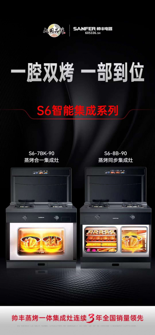 近日,大國品牌帥豐電器就從消費(fèi)需求出發(fā),創(chuàng)新推出S6智能集成系列S6-7BK-90蒸烤合一集成灶和S6-8B-90蒸烤同步集成灶,將蒸烤功能、顏值、智能化、大火力、油煙吸凈率、品質(zhì)六大維度能力全部點(diǎn)滿,有望成為風(fēng)靡消費(fèi)市場的新一代爆款好物。
