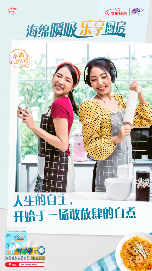 為此,清風推出“不油自煮計劃”, 以煥新上市的清風海綿吸廚房紙巾為依托,用“一抹即凈”的不油體驗和“一掃就會”的自煮攻略,幫助用戶破除廚房恐懼,給不同身份的用戶輕松自煮不油膩的廚房體驗,讓TA們能不由自主地愛上烹飪,輕松享受做飯帶來的快樂。