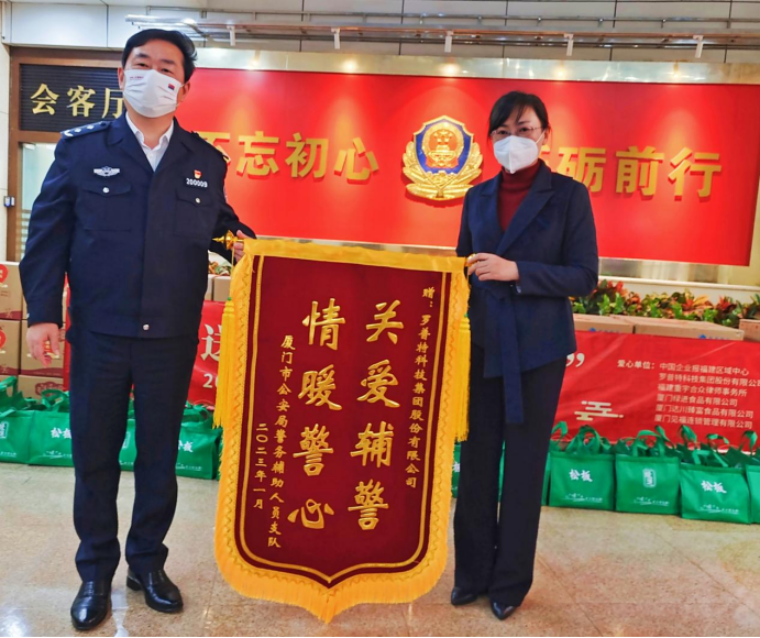 由中國企業(yè)報福建公司發(fā)起的“2023愛心年夜飯送輔警活動”第三個中國人民警察節(jié)當天在廈門市公安局大院隆重舉行,來自羅普特科技集團股份有限公司、福建重宇合眾律師事務(wù)所、廈門綠進食品有限公司、廈門達川臻富食品有限公司、廈門見福連鎖管理有限公司等愛心企業(yè)為廈門輔警支隊一線輔警送來了節(jié)日的問候和預(yù)制菜、油、果汁等愛心年夜飯“大禮包”,以及口罩等防疫物資,向奮斗在在一線守護廈門城市平安的執(zhí)勤輔警表示感激和敬意。