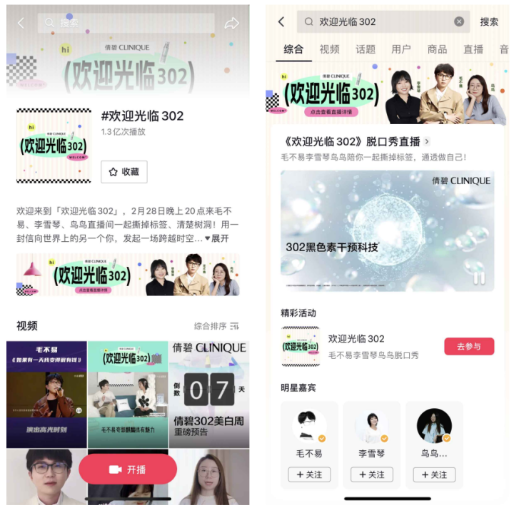 2月28日,由“通透白,通透活”的美白淡斑專(zhuān)家倩碧獨(dú)家冠名的抖音綜藝《歡迎光臨302》上線。